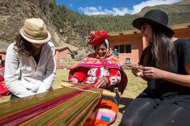 Lo recogerán de su hotel y partirá hacia Huilloc, donde aprenderá sobre las costumbres de esta comunidad y participará en una demostración de una de las actividades ancestrales de la vida andina: el proceso de confección de prendas utilizando técnicas tradicionales, entendiendo el significado de su iconografía. Un residente le mostrará el proceso de tejido de la ropa típica de Huilloc. Además de la oportunidad de apreciar esta actividad tradicional, puede comprar una de estas hermosas prendas, que contribuyen al fortalecimiento espiritual y la identidad de este pueblo inca, haciendo de esta una experiencia completa y especial. Luego, partirá hacia el sitio arqueológico de Pumamarca, compuesto por estructuras como plataformas, carreteras y canales. Almorzará en el camino. Más tarde, visite la ciudad de Ollantaytambo, que ha estado habitada continuamente desde la época del Imperio Inca. Finalmente, será trasladado de Ollantaytambo a su hotel en Cusco.