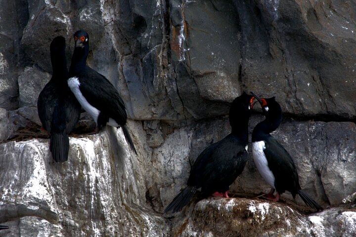 Depart from Ushuaia’s Tourist Pier and sail into the heart of the Beagle Channel, enjoying stunning coastal views including the Maritime Museum, the End of the World Museum, and the majestic Olivia and Cinco Hermanos Mountains. Get close to the Island of Los Lobos to see playful sea lions in their natural habitat. Then, discover Bird Island, home to colorful Magellanic and Imperial cormorants. Sail toward the Les Eclaireurs Lighthouse and admire the remains of the historic Monte Cervantes shipwreck. Continue along the southern coast of Tierra del Fuego, spotting Estancia Remolino and the stranded Monte Sarmiento ship. Cross the channel and view Gable Island and Chile’s Puerto Williams Naval Base. Finally, pause at Martillo Island, where a curious colony of Magellanic penguins will delight you with unforgettable moments and perfect photo opportunities. On your return, take in views of the traditional Túnel and Fique Estancias that frame this unique journey.