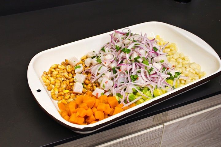 Lo trasladarán de su hotel al mercado de productores de San Isidro, donde comienza la experiencia culinaria de hoy. Allí, descubrirás sus puestos y los principales ingredientes utilizados en la cocina peruana, acompañado por un chef peruano. Luego, lo trasladarán a Urban Kitchen para ser parte de una clase de cocina participativa en la que un chef le mostrará los platos de nuestro país. Después de esta divertida experiencia, disfrutará de los deliciosos platos preparados en clase. Después de eso, regresará al hotel.