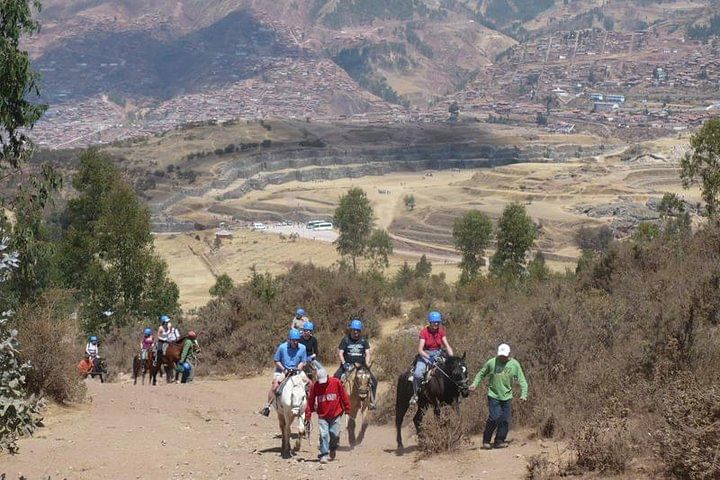 Lo recogerán de su hotel en Cusco, seguido de un viaje en automóvil de veinte minutos hasta el punto de partida. El viaje dura dos horas y media y lo llevará a través de campos, pueblos de estilo andino y vistas de sitios y ruinas incas. Disfrutará de una vista maravillosa de la ciudad de Cusco de camino al Templo de la Luna, donde dejarán los caballos y emprenderán el viaje en automóvil de regreso a Cusco. Regreso al hotel en Cusco. No está permitido visitar los sitios arqueológicos mientras esté montando a caballo.