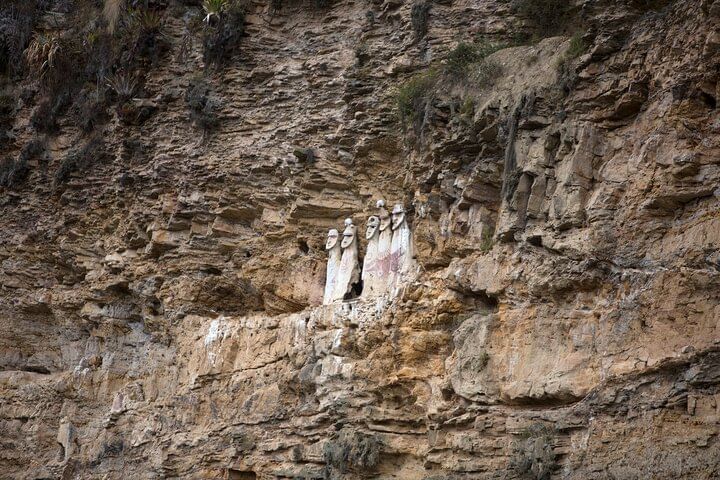 Visit the Sarcophagi of Karajía, striking two-meter-high cliffside clay sculptures, then return to Chachapoyas.
